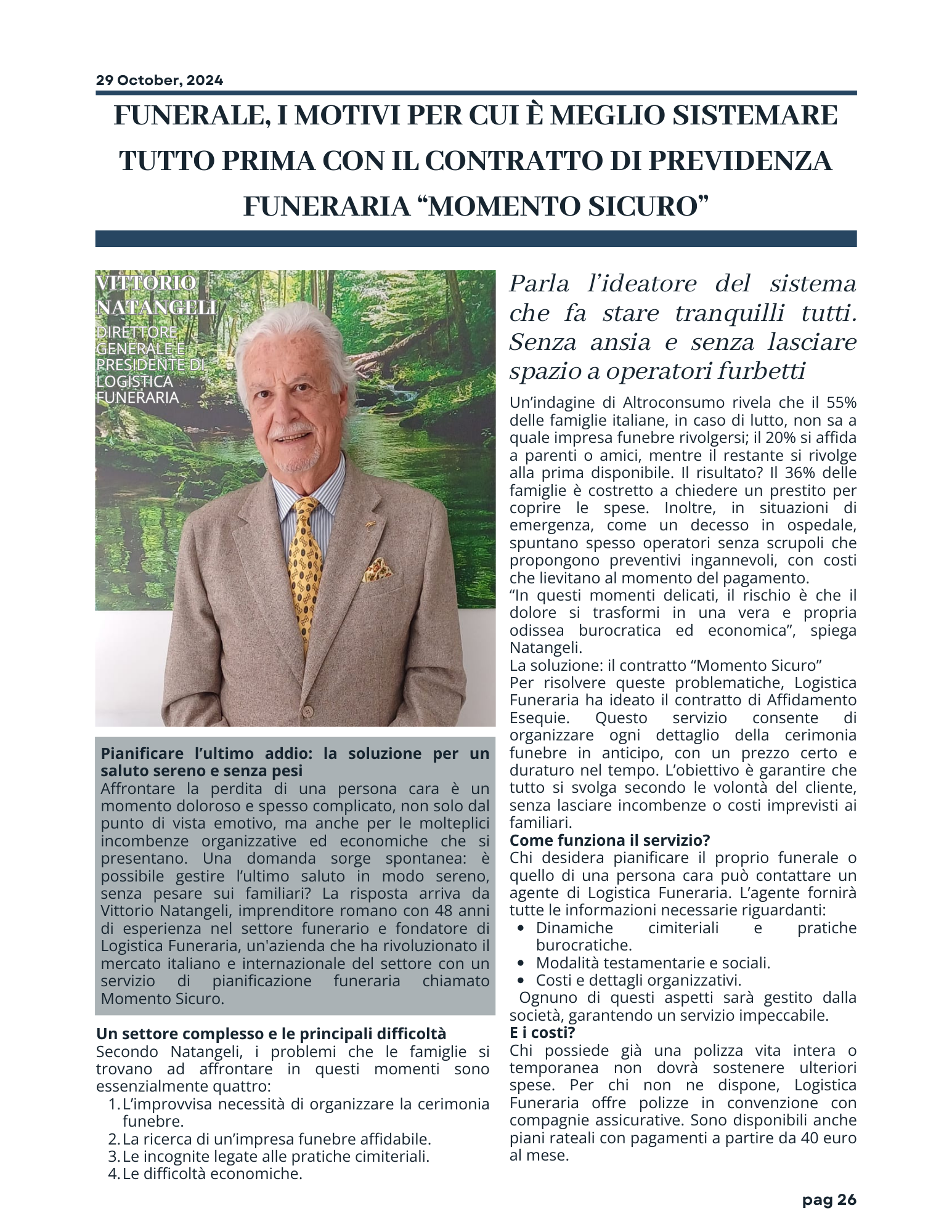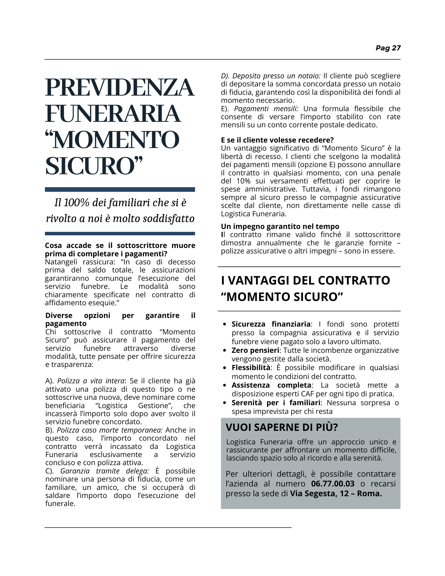 Momento Sicuro è un servizio di previdenza funeraria che permette ai clienti di pianificare in anticipo il proprio funerale, scegliendone ogni dettaglio e sollevando i familiari da oneri emotivi ed economici.